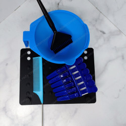 Набор синий (Миска, кисть, расч карб пласт хв, термоковрик, миксер)